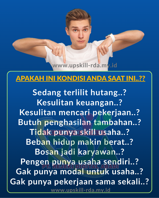 Di era digital saat ini katanya makin hari makin sulit untuk mencari uang Dan mungkin anda salah satu yang berfikir demikian. Tapi pada kenyataannya TIDAK seperti itu, justru dengan perkembangan teknologi saat ini membuat banyak orang semakin mudah menghasilkan uang dari mana dan kapan saja, jika anda tau cara cepat dan mudah menghasilkan uang saat ini, salah satunya dengan bergabung menjadi mitra dan mengasah skill dan ilmu digital UPSKILL RDA.