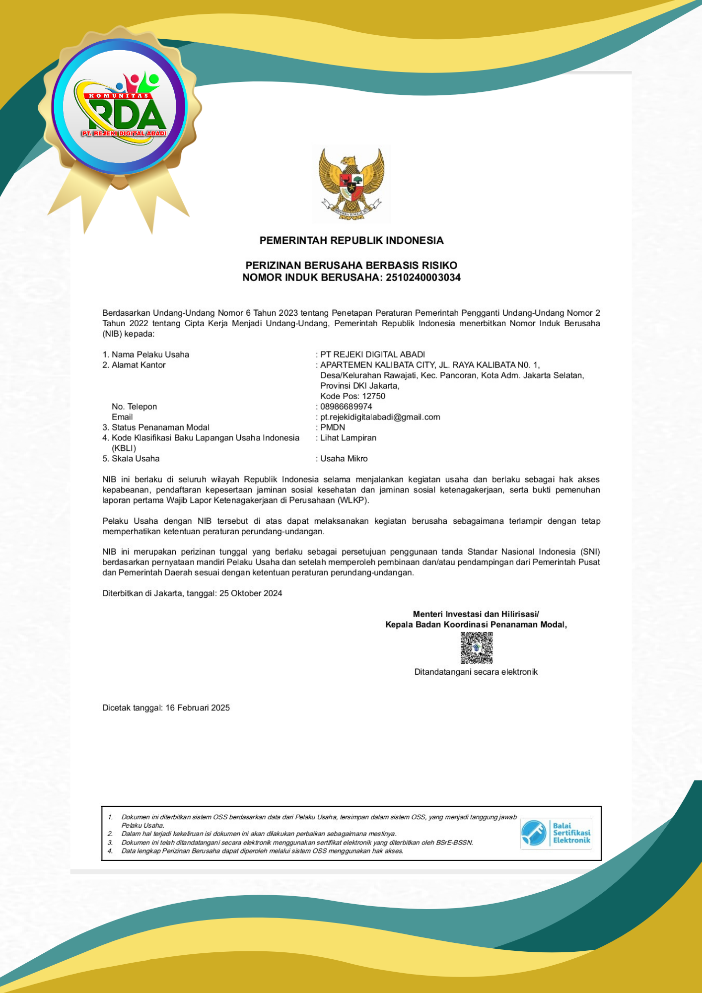 LEGALITAS PT. RDA